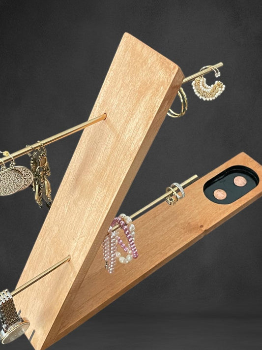 Elegant Hardwood Jewelry Caddy with Brass Accents